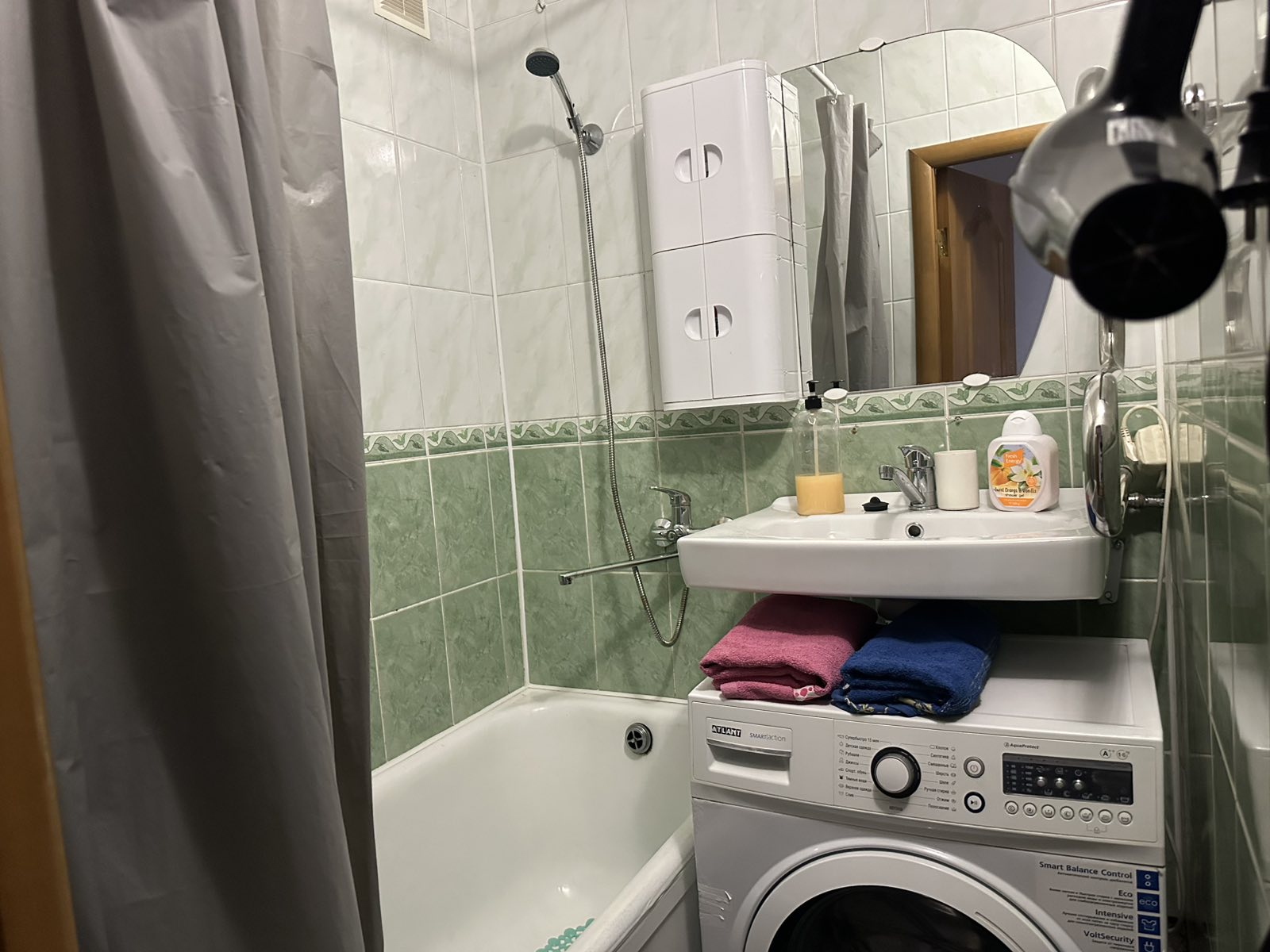 Все условия есть: телевизор, стиральная машина, фен.