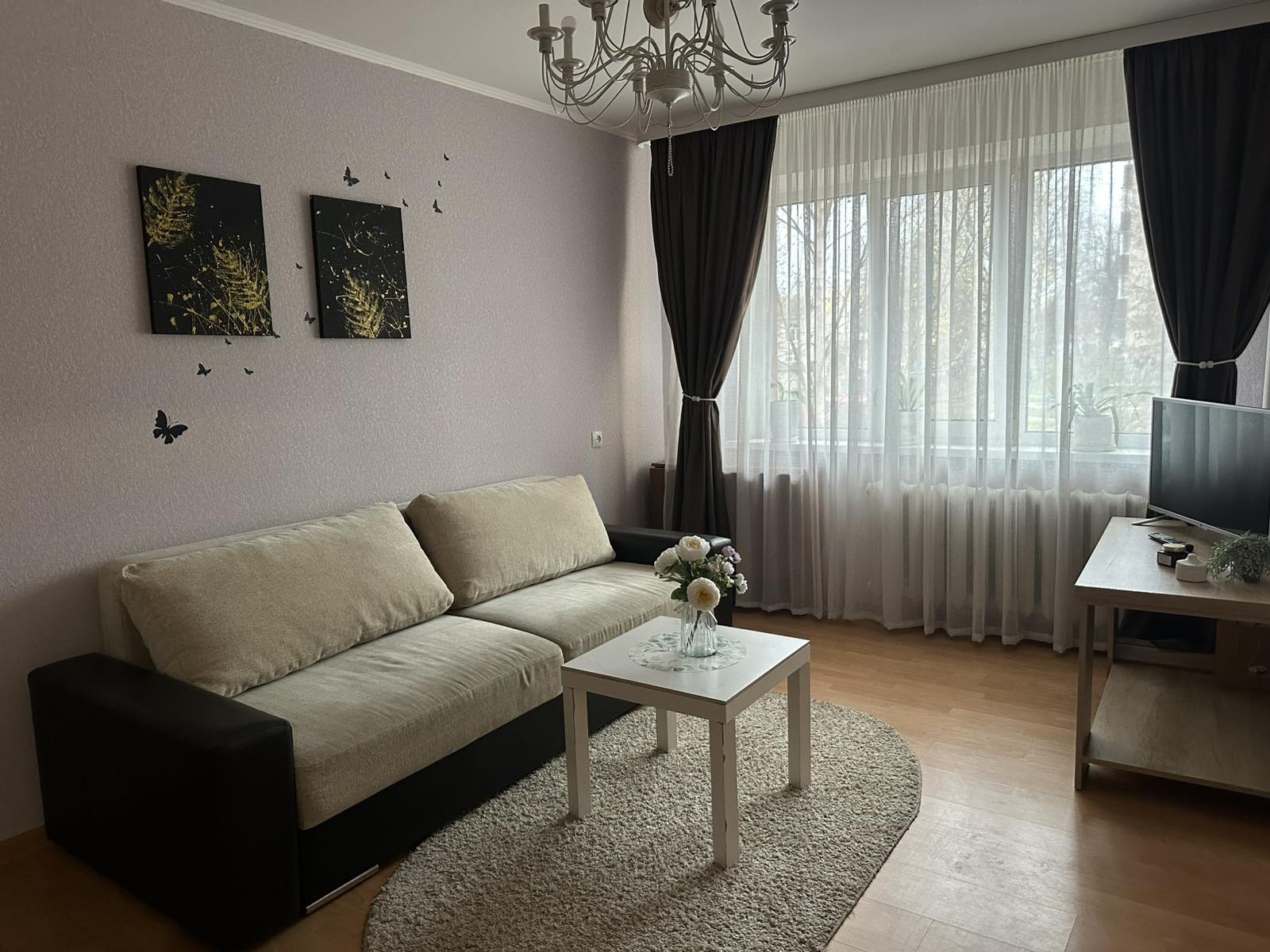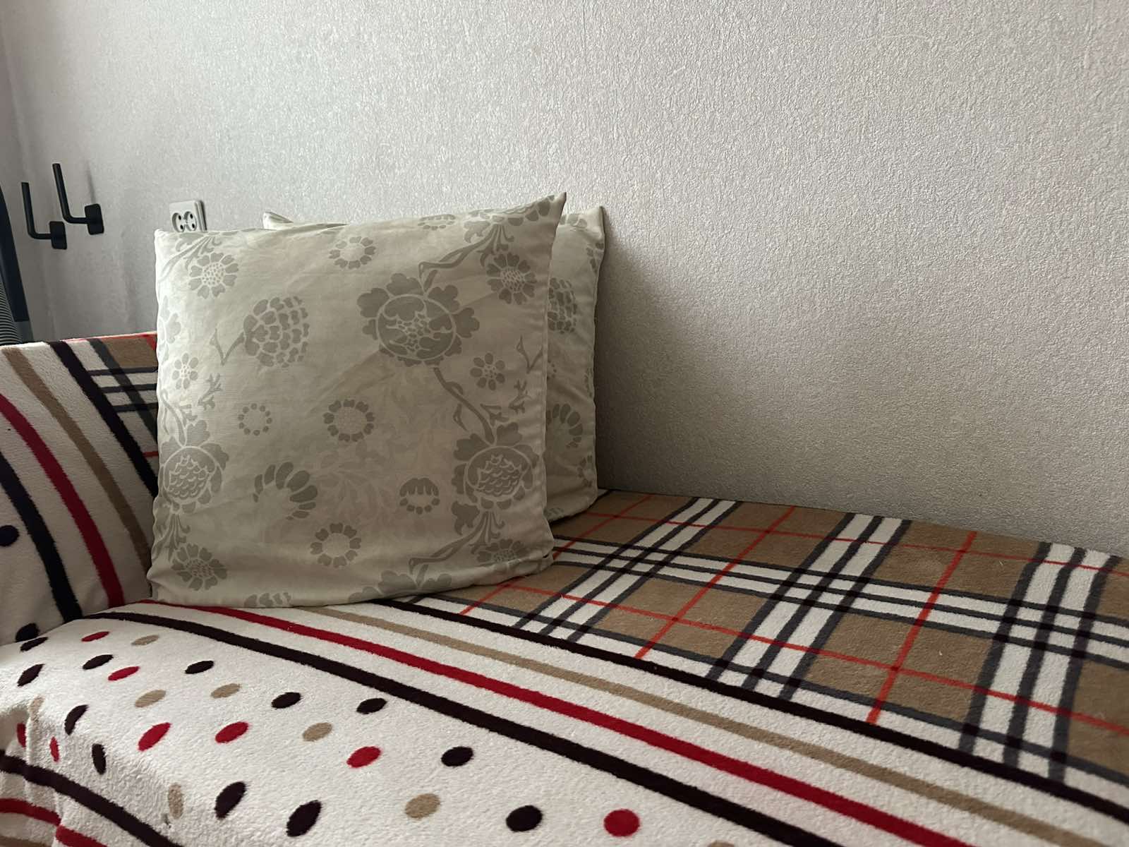 Телевизор, Домофон, Полотенца, Кабельное/спутниковое телевидение, Постельное бельё, Мыло, Туалетная бумага, Стиральная машина, Кофе, чай, Утюг, Фен, Шампунь, Ванна, Холодильник, Посуда